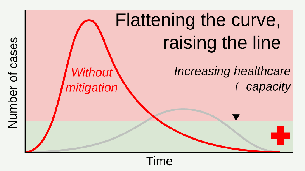 The purpose of asking people to distance themselves from one another was to reduce the initial steepness of the curve and to slow down the way it gets steeper. This is done by reducing the number of people each of us is in contact with. In mathematical terms we are seeking an exponential growth more like 2-4-8-16 than 10-100-100-1000. What the experts call “reducing R0” (R0 is the reproduction number – how many others a person goes on to infect, on average).