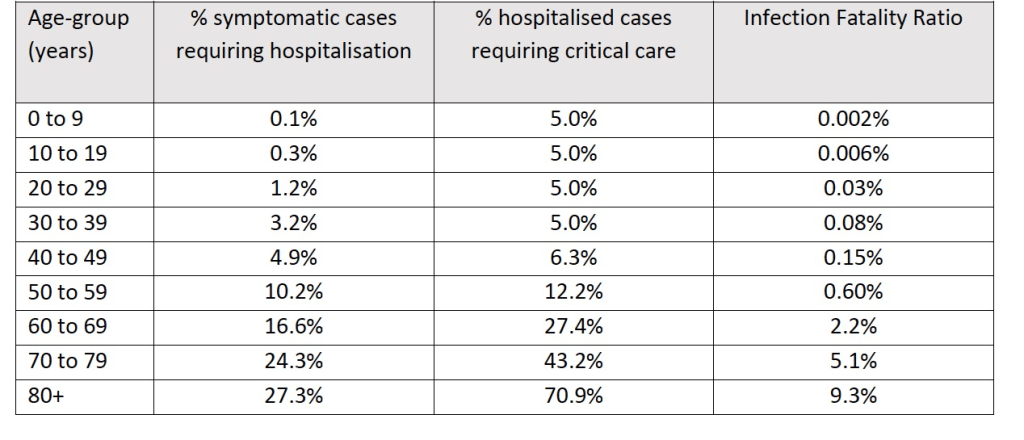 For COVID, a team at Imperial College has calculated the following risks: