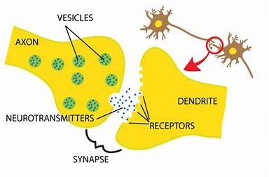 The junction between two nerve endings is called a synapse. When an electrical pulse has passed down the long axon of one cell it reaches its end point where it finds a number of containers (called vesicles) filled with a particular chemical. These chemicals are the neurotransmitters, the vital substances that communicate the pulse from one nerve to the next