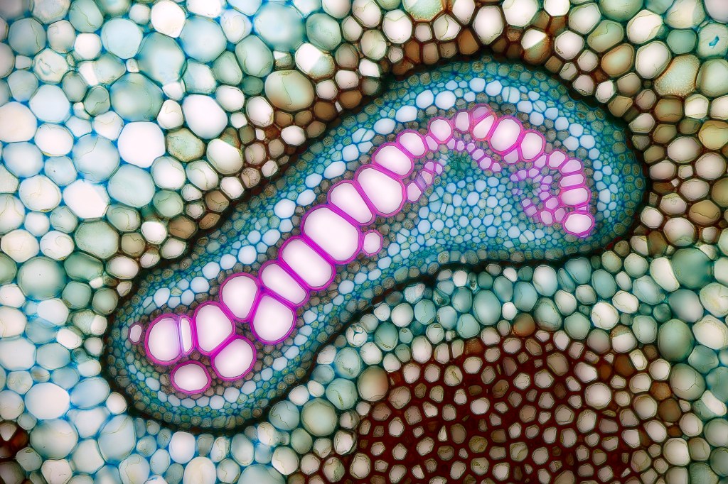 Figure 2 A photo taken through a microscope, showing several types of cells assembled into a structure (in bracken rhizomes)