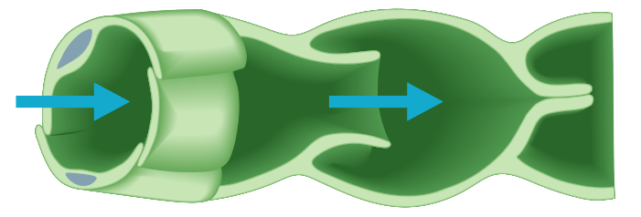 As the muscle squeezes, the lower valve closes, preventing back flow, and the upper one opens, enabling forward movement. In this manner, the fluid only moves in one direction. Ratcheting up in this cunning way, the fluid gradually rises through the body, until it reaches the heart.