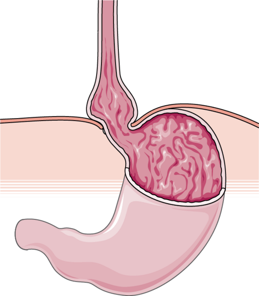 The oesophagus has to pass through the large muscle that separates the abdomen from – the diaphragm. A hole in the diaphragm, called a hiatus allows for this, but, for many people, especially the over-50s, the upper part of the stomach may bulge upwards through this hole causing acid to flow upwards into the oesophagus. This condition, known as hiatus hernia, can be treated with medicine that reduces the production of acid in the stomach lining.