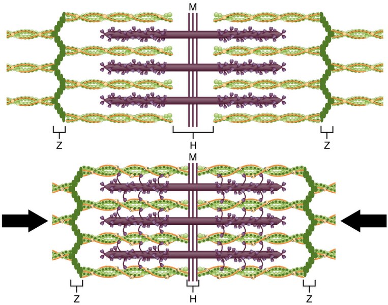 This action keeps repeating, shortening the muscle fibre a little with each step. This 30-second video shows in greater detail the remarkable way in which this happens: animation of muscle contraction.