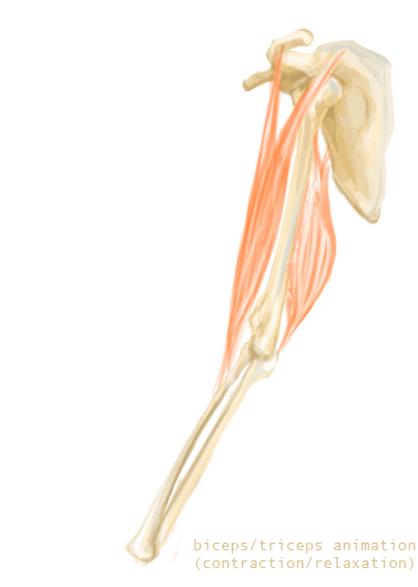 The movement of our arms for example, is effected by opposing pair of muscles. The biceps (on top) contract to raise the forearm while the triceps (underneath) are relaxed. The reverse happens to return the arm to its former position.