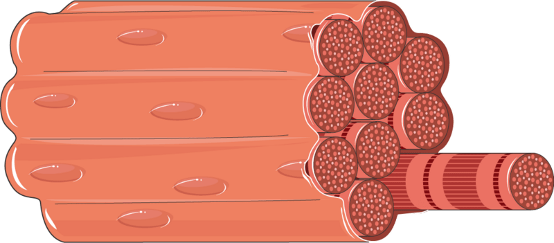 The amazing story of how muscles contract was worked out in ground-breaking research during the 1950s. Muscle tissue, as anyone who cooks meat knows, is fibrous. The fibres we see in meat are themselves made of bundles of smaller fibres (less than a millimetre across). Each one of these tiny fibres is a long thin cell – some may be as long as a muscle itself. These unusually long cells develop as an embryo grows, by the fusion of regular-size cells. It’s these long cells – the fibres – that have the extraordinary ability to contract.
