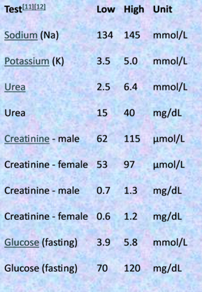A different kind of biomarker, familiar from the results of routine blood tests, measures the level of various substances derived from the food we eat. The sugar, glucose is one example, the fats known as triglycerides are another. Others measure the functioning of specific parts of the body. Levels of a waste product called creatine indicate whether the kidneys are functioning properly in their task of removing the substance from blood; levels of potassium and sodium provide information about the hydration of cells and functioning of the nervous system.