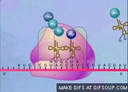 As this animated diagram shows the trick of translating the letters in the DNA code into physical protein is performed by an ensemble of molecular actors. The star of the show is the cross-shaped molecule called tRNA (for ‘transfer’). This is a double-ended molecule that is able to interpret the genetic code.