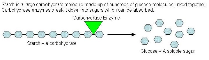 Enzymes (called carbohydrases) can break the bond between adjacent subunits in the chain a carbohydrate molecule