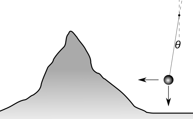 Figure 2: Deflection of a pendulum by gravitational pull of a mountain. Image credit: Billc