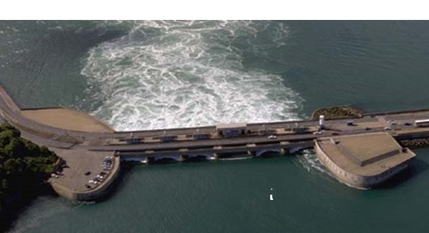 The incoming and outgoing water can be captured in the blades of turbines, generating energy as they spin. The example shown in figure 9 is on the north coast of France.