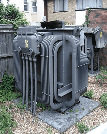 That’s why substations and transformers are dotted around our towns and countryside – to drop the voltage down, in our neighbourhood. (figure xxx)