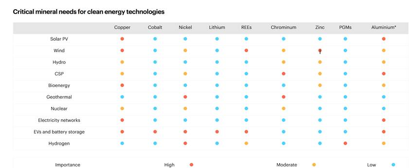 The website from which this table is taken has full information on the minerals needed for the green revolution: Mineral requirements for clean energy transitions – The Role of Critical Minerals in Clean Energy Transitions – Analysis – IEA
