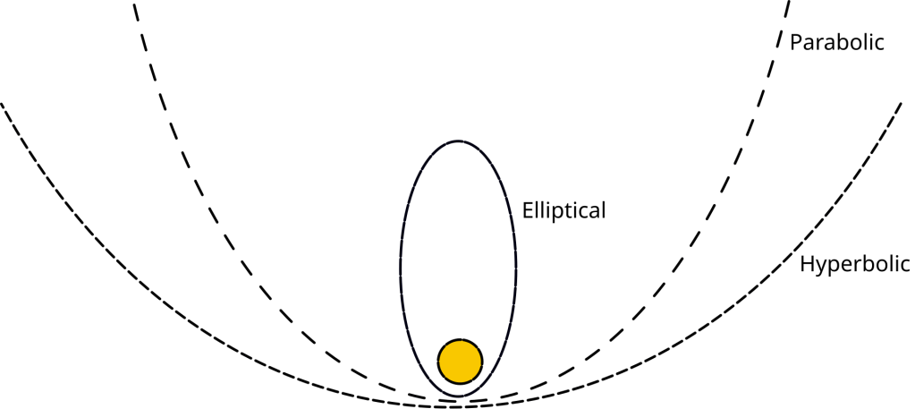 When Newton’s gravity law is put together with the mathematical equations of motion, various kinds of orbit are found to be possible: ellipse, parabola or hyperbola. This is equally true for a human-made space vehicle orbiting the Moon and a planet revolving around the Sun.