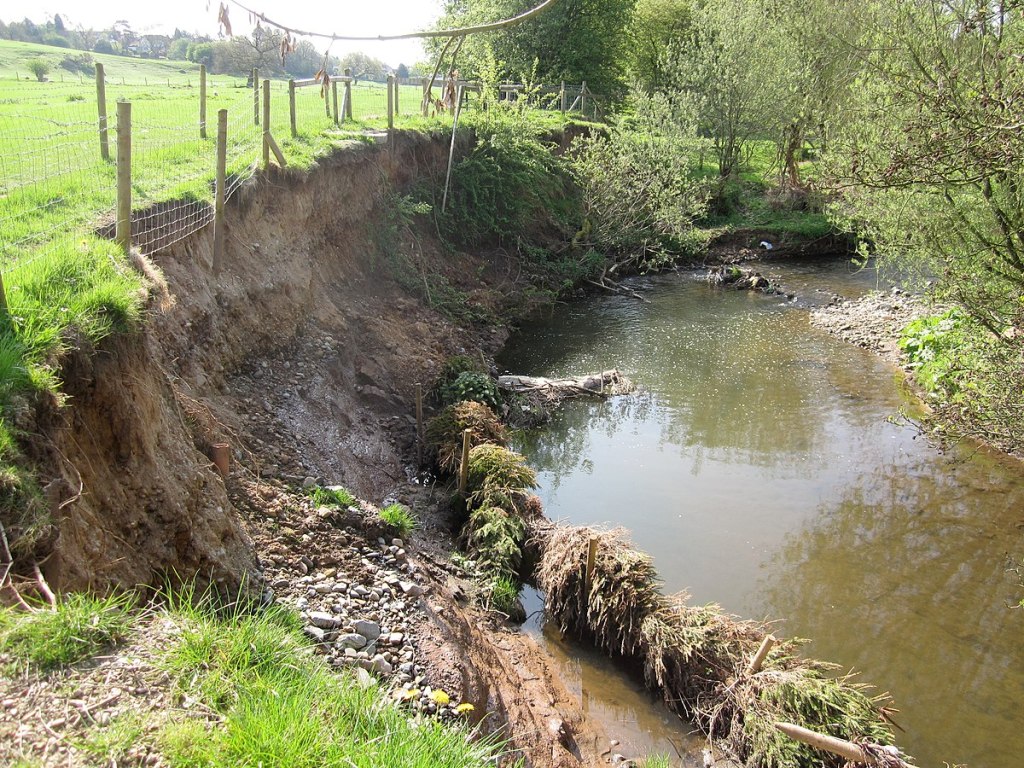 The flow of water at a sharp bend will inevitably mean the material of the bank gets attacked when the current is strong. The bank is gradually eroded, exacerbating the curvature of the bend. Debris created in this way will be deposited on the bed of the river on the opposite side, where the current is weaker.