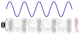 In figure 3 a sound wave is illustrated as a series of compressions in air and the degree of compression is represented in a rising and falling graph.